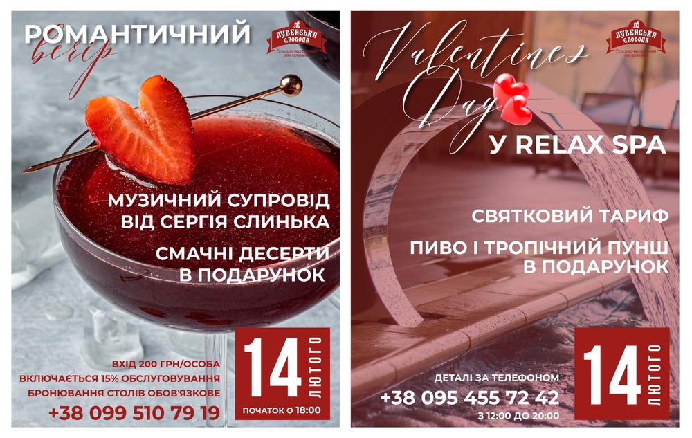 14 лютого комплекс «Лубенська Слобода» запрошує провести День закоханих у атмосфері любові, тепла та приємних емоцій.